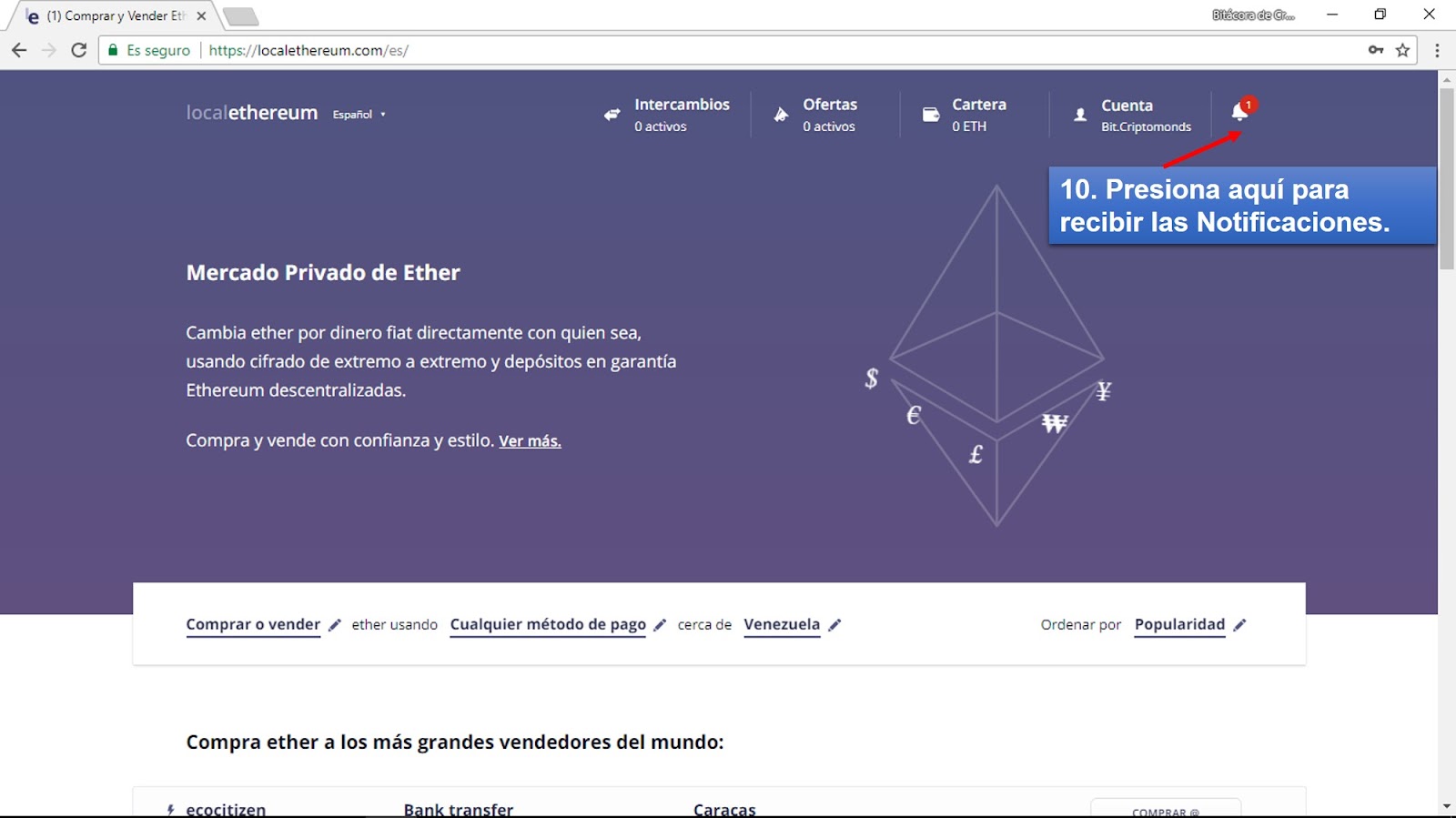 Plataforma de compra y venta de criptomoneda ETH Localethereum